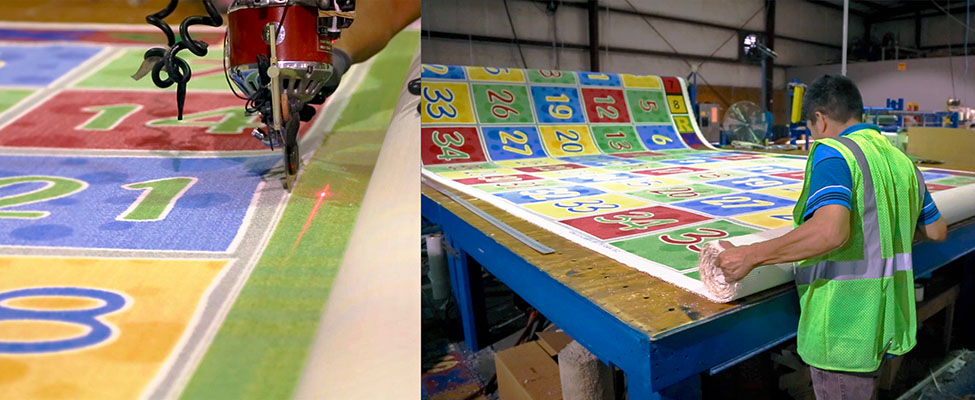 Flagship Carpets is the only supplier of educational carpets who is manufacturer direct. One campus in Calhoun, Georgia to centralize yarn prep, tufting, weaving, dyeing, printing, cutting, serging, warehousing and distribution. We dropship direct to your customer, NO MIDDLE MAN and simply the best margins in the business!